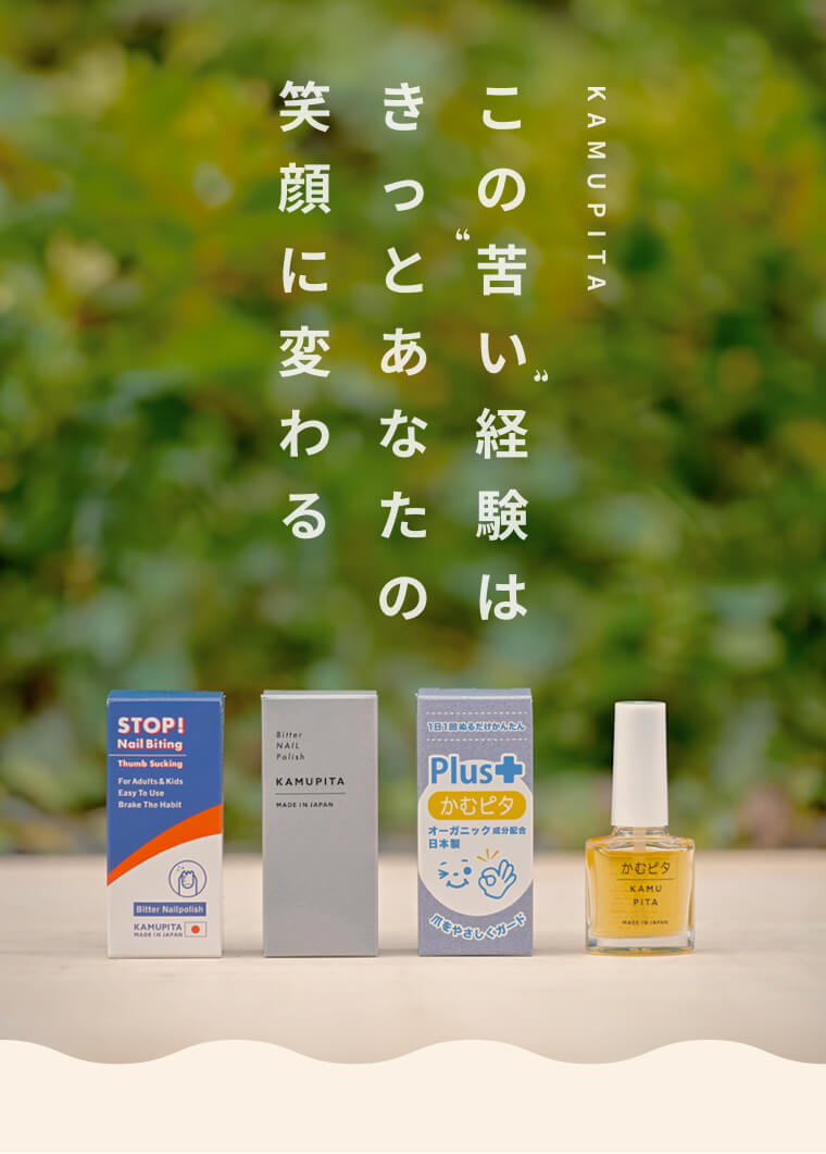 かむピタは、爪噛みや指しゃぶりを防ぐために開発された日本製の苦いマニキュアです。お子様から大人まで、習慣を改善したい方に効果的な商品で、健康な爪や指を保つ手助けをします。使いやすく安全な成分で作られており、安心してご利用いただけます。